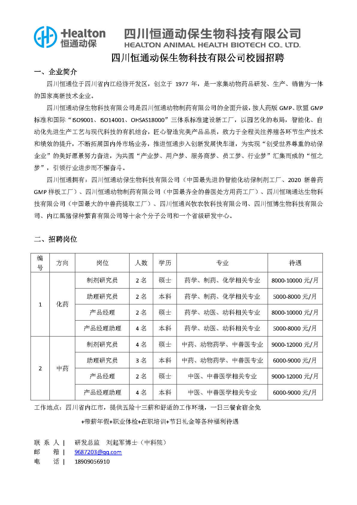 四川恒通动保招聘研发中心招聘