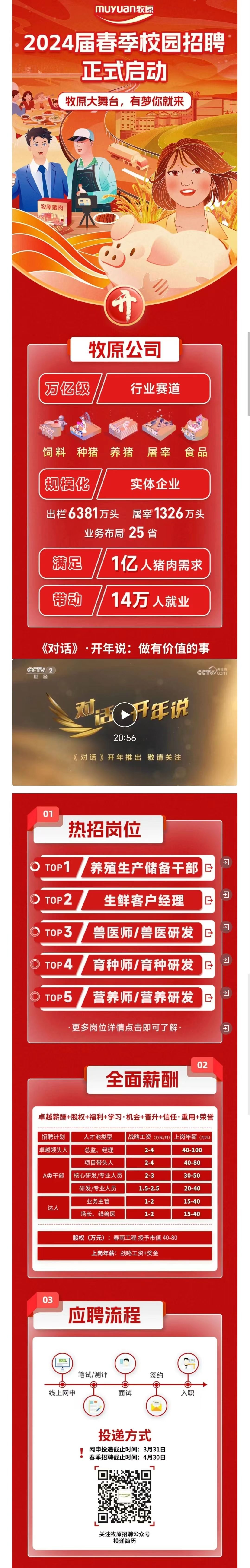 【上市公司】牧原公司2024届春季校园招聘正式启动
