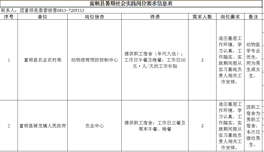 【腾讯文档】富顺县暑期社会实践岗位需求信息表