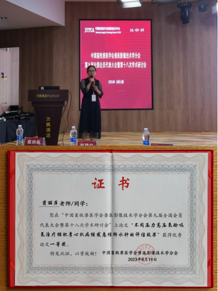bevictor伟德任志华教授、苟丽萍老师参加了此次会议。苟丽萍老师做了主题为《不同高压氧治疗猫肥厚性心肌病继发急性肺水肿的疗效观察》的专题报告,介绍了猫肥厚性心肌病继发急性肺水肿的发病原因、诊断方法以及高压氧在治疗该病过程中的作用以及效果。同时,苟丽萍老师所投论文《不同压力高压氧舱吸氧治疗猫肥厚性心肌病继发急性肺水肿的评估效果》获得优秀论文一等奖。